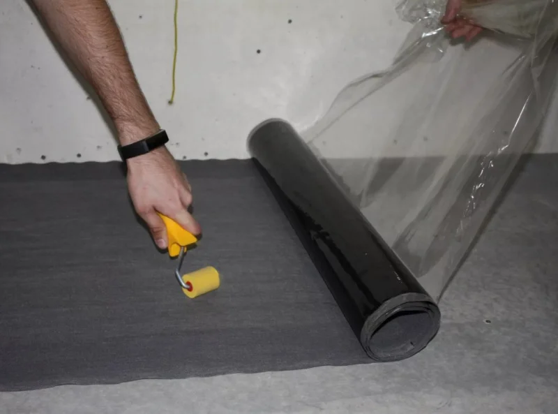 Для улучшения адгезии перед приклейкой гидроизоляции основание обрабатывается битумным праймером на водной основе или латексной грунтовкой.