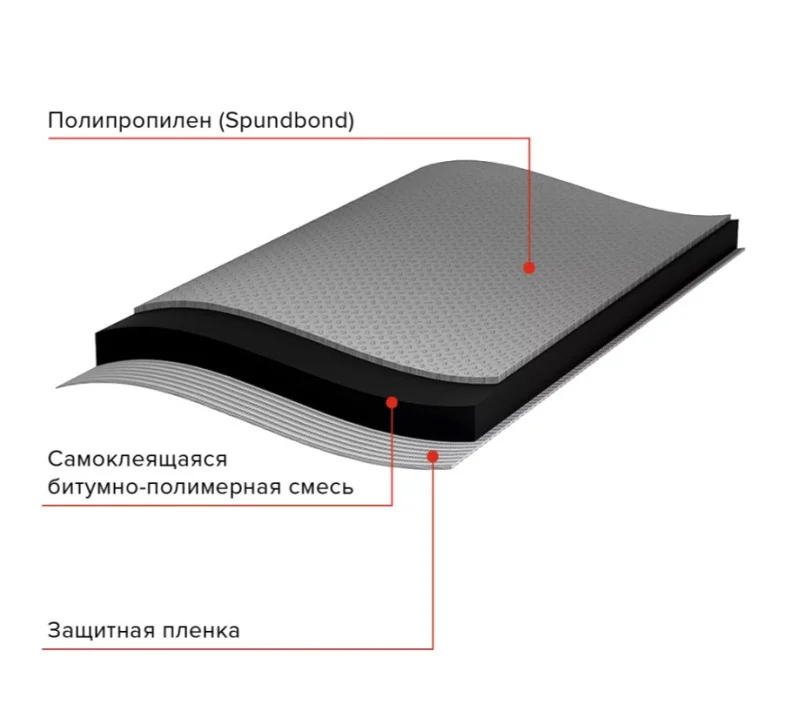 Рулонный самоклеящийся безосновный материал для гидроизоляции межэтажных перекрытий внутренних помещений.