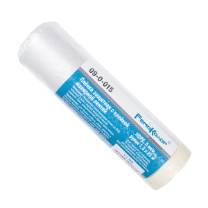 Прозрачная полиэтиленовая пленка из ПНД толщиной 8 мкм с клейкой малярной лентой шириной 16 мм, прикрепленной к одному краю пленки. Применение: для защиты мебели, обоев, дверных и оконных проемов, подоконников, плинтусов во время малярных и ремонтных работ от грязи, пыли, краски или влаги. Малярная лента прочно фиксирует край пленки и не оставляет следов клея после снятия.
