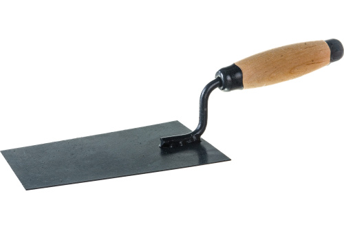 Кельма отделочника, стальная, деревянная усиленная ручка Россия 86241 применяется при проведении ремонтных, отделочных и строительных работ для набрасывания и разравнивания смесей на необходимых поверхностях. Изделие имеет прочное рабочее полотно из стали и усиленную рукоятку из древесины.