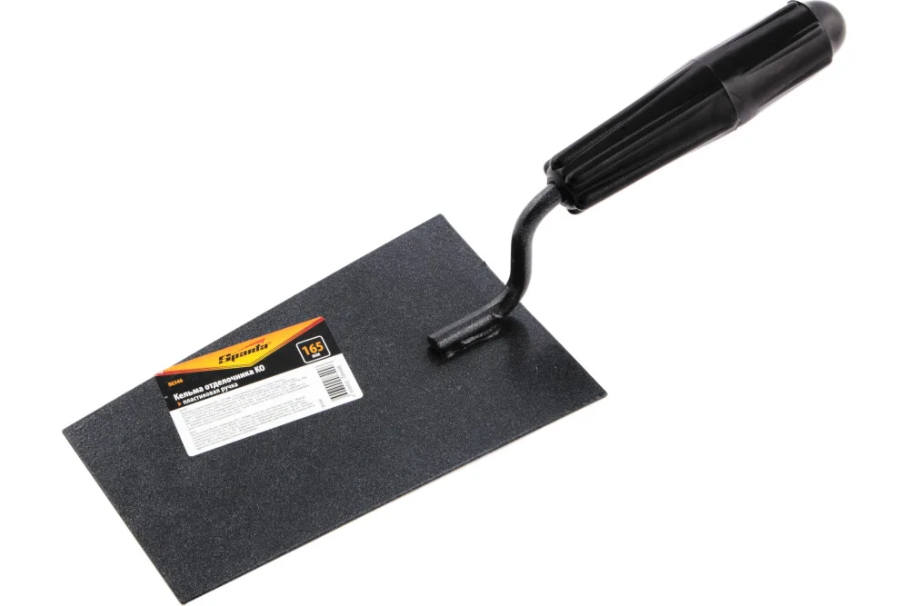 Кельма отделочника SPARTA КО, 165 мм, пластиковая ручка 86346 позволяет производить кладку кирпича и плитки, строительных блоков, наносить и выравнивать различные строительные смеси и отделочные материалы, подрезать излишки раствора, значительно облегчая труд строителей и делая их работы намного быстрее и эффективнее.
