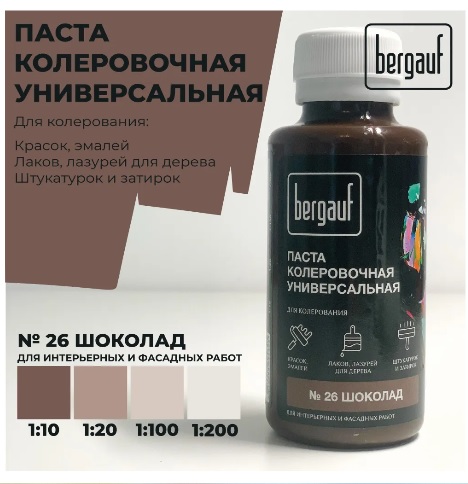 Паста колеровочная Bergauf является универсальным средством для колерования различных материалов, таких как краски, эмали, лаки, шпатлевки, лазури и затирки на водной, масляной и других органических основах. Она идеально подходит для внутренних работ и обладает экологической безопасностью. Она эффективно применяется для создания желаемого оттенка в красках, эмалях, лаках, лазурах для дерева, штукатурках и затирках. С ее помощью можно добиться идеального цветового решения для различных поверхностей и материалов. Паста колеровочная универсальна и удобна в использовании, позволяя достичь богатой и насыщенной палитры оттенков. Благодаря ее многофункциональности и надежности, она стала востребованным инструментом для профессионалов, которые стремятся создавать качественные и индивидуальные проекты.