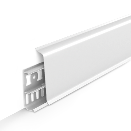 Плинтус Лексида 80мм предназначен для декоративного оформления и укладки по краям комнаты между стеной и полом. Плинтус имеет две части: одна фиксируется на стене, а другая, выполненная с элементами декора, крепится сверху с помощью специальных клипс.