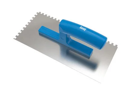Гладилка Кнауф с зубьями размером изготовлена из нержавеющей стали. Используется для выравнивания и нанесения клеевых и штукатурных растворов, а также для укладки плитки.