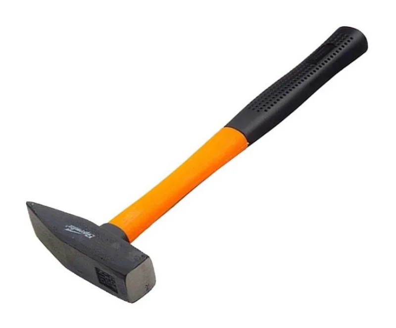 Головка молотка кованая, закалена, покрыта черным водным лаком и отшлифована, фибергласовая рукоятка.