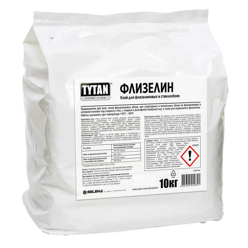 Клей TYTAN Euro-line изготавливается с использованием модифицированных крахмалов, импортируемых из Европы. Он подходит для всех видов флизелиновых обоев, включая структурные и потолочные обои на флизелиновой или нетканой основе, как под покраску, так и без нее, с различной текстурой поверхности, в том числе и для уже окрашенного флизелина.