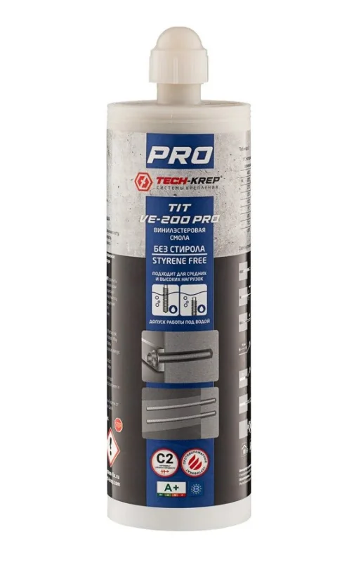 Особенности: подходит для высоких нагрузок. Не содержит стирола и не имеет запаха, благодаря чему анкер можно использовать в помещениях. За счет вязкой консистенции может применяться в пустотелых материалах совместно с сетчатой гильзой. Отсутствие напряжений в базовом материале позволяет устанавливать анкеры в условиях минимальных краевых и межосевых расстояний. Обладает высокими эксплуатационными нагрузками и подходит для установки в любых базовых материалах.