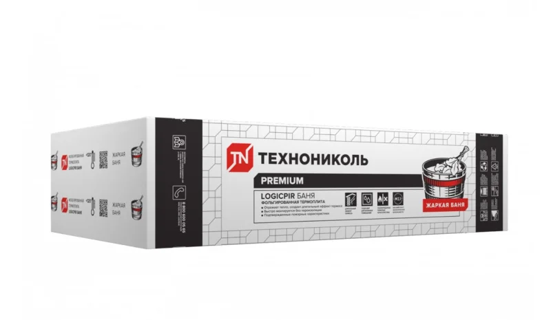 Термоплита LOGICPIR Баня создана на основе вспененного полиизоцианурата (модифицированного полиуретана). Более 95% объема материала – это закрытые жесткие ячейки, заполненные газом с крайне низкой теплопроводностью. Именно эта структура обеспечивает уникальные теплотехнические характеристики LOGICPIR. Двусторонняя фольгированная обкладка LOGICPIR Баня выполняет роль пароизоляции и отражающей изоляции. Благодаря тому, что термоплиты укладываются одним непрерывным слоем, создается выраженный «эффект термоса» – баня быстрее нагревается и дольше остывает.