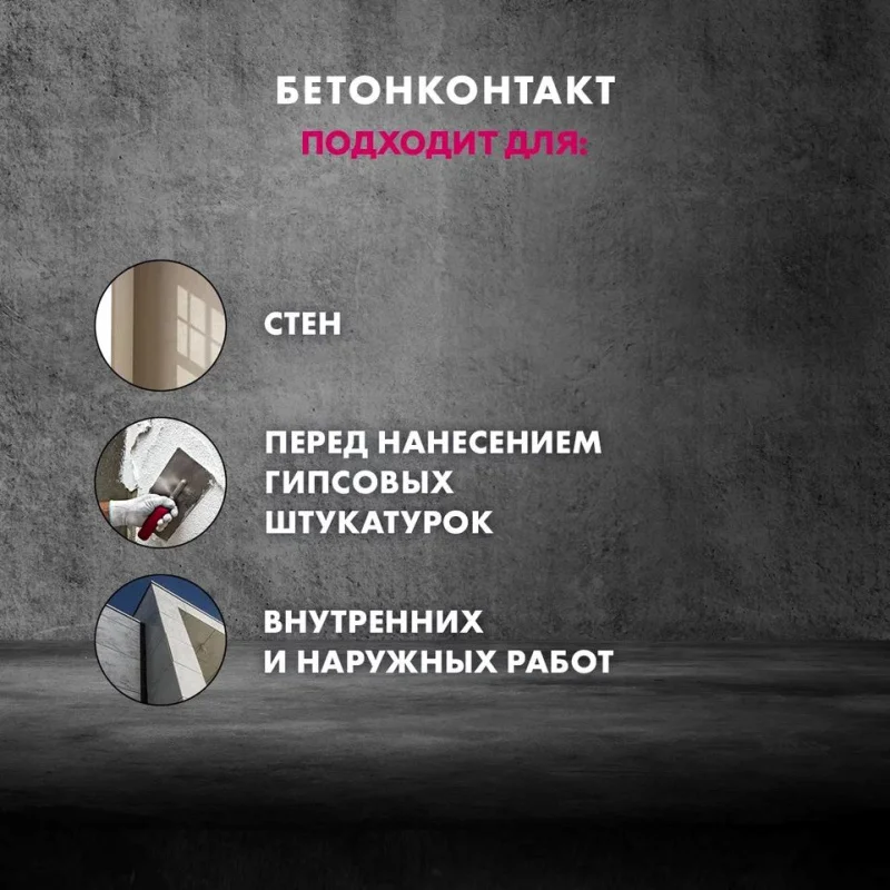 Бетонконтакт Ceresit CT19 применяется при обработке слабо впитывающих бетонных поверхностей перед нанесением плиточного клея или штукатурки. Он состоит из кварцевого наполнителя, который обеспечивает надежное сцепление материалов с поверхностью. Грунтовку можно использовать как внутри, так и снаружи помещений, она является готовой к использованию без необходимости разбавления.