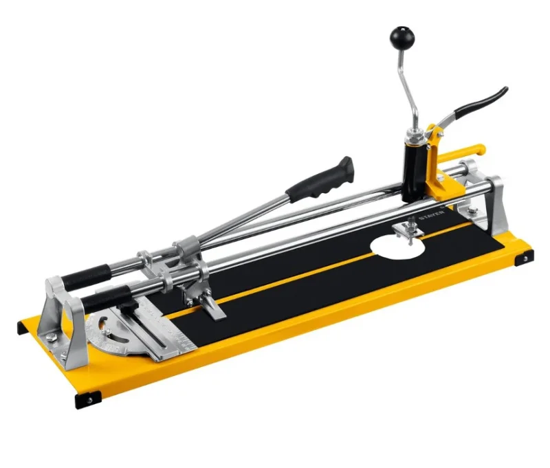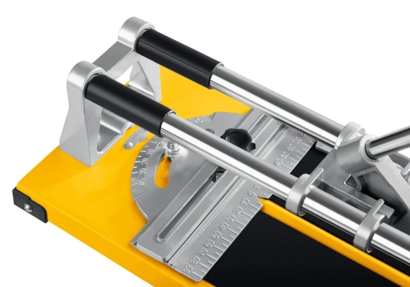 Благодаря выносной линейке и угольнику, есть возможность реза под различным углом. Для того чтобы плитка не скользила во время работы, на усиленную платформу наклеены резиновые накладки.