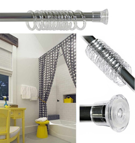 Устанавливается в распор между двумя стенами в ванных комнатах и любых других помещениях, длина карниза может меняться от 120 до 210см.