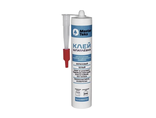 Клей шпатлёвка Masterteks вододисперсионный предназначена для монтажа потолочных покрытий и декоративных элементов. Её быстрая схватываемость и прочный, надежный клеевой шов после высыхания делают этот материал идеальным выбором. Эта клей шпатлёвка обладает несколькими особенностями, которые делают её предпочтительной. Во первых, состав на акриловой основе не токсичный и не имеет резкого запаха, что позволяет работать с ним в закрытых помещениях без опасений для здоровья. Во вторых, Masterteks клеит и шпатлюет, что делает его универсальным материалом для различных задач. Он отличается высокой адгезией к разным основаниям, таким как дерево, бетон, штукатурка и другие материалы. Наконец, эту клей-шпатлёвку можно окрасить любыми видами красок, что позволяет легко вписать её в любой дизайн интерьера.