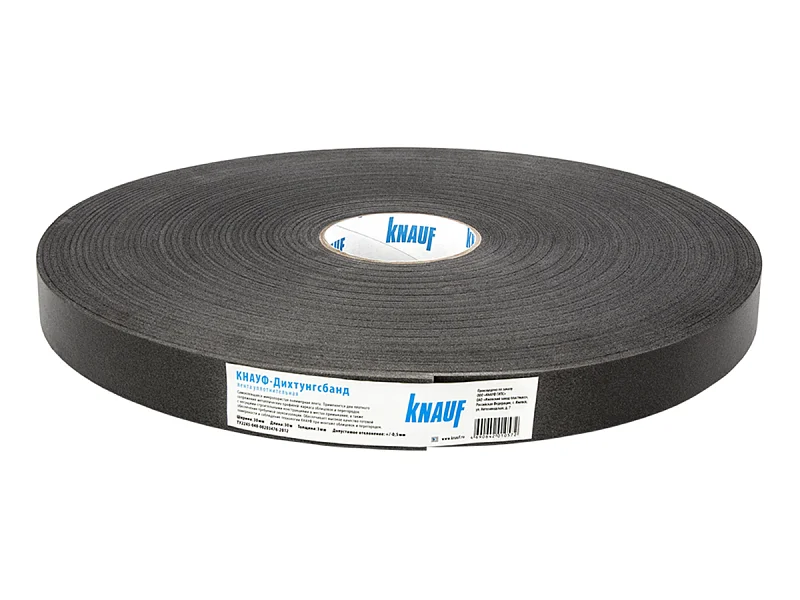 Лента Дихтунгсбанд KNAUF – это самоклеящаяся микропористая полимерная лента, разработанная для обеспечения плотного сопряжения металлических профилей каркаса облицовок и перегородок с несущими строительными конструкциями в местах их примыкания. Также данная лента является отличным средством для обеспечения необходимого уровня звукоизоляции. Лента гарантирует высокое качество готовой поверхности и соблюдение технологии КНАУФ при монтаже облицовок и перегородок. Это позволяет достичь оптимальных результатов как в эстетическом плане, так и в вопросах надежности и функциональности. А благодаря самоклеящейся природе ленты, ее установка становится очень удобной и эффективной.