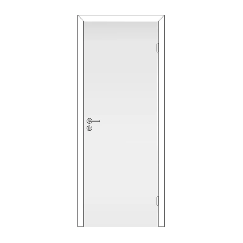 Полотно дверное без притвора глухое, крашенное. Каркас - массив сосны и(или) МДФ. Сотовое картонное заполнение. Поверхность - плита ХДФ. Окрашено краской УФ-отверждения. Установлен замок модель 2014, отфрезерованы посадочные места для крепления петель. Выполнена фрезеровка 2-х отверстий под ручку и цилиндр (завертку).