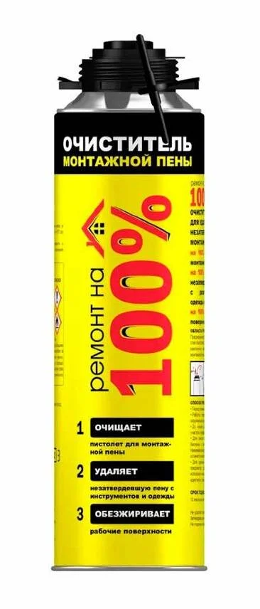 Очиститель монтажной пены Ремонт на 100% является идеальным решением для устранения незатвердевшей монтажной пены. Он очищает монтажные пистолеты и эффективно справляется с удалением пены с различных поверхностей, включая одежду и инструменты. Средство отличается удобством и простотой в применении и очистки как внешних, так и внутренних поверхностей монтажного пистолета. Оно эффективно очищает рабочие поверхности от свежей монтажной пены, что делает его незаменимым помощником для любого мастера