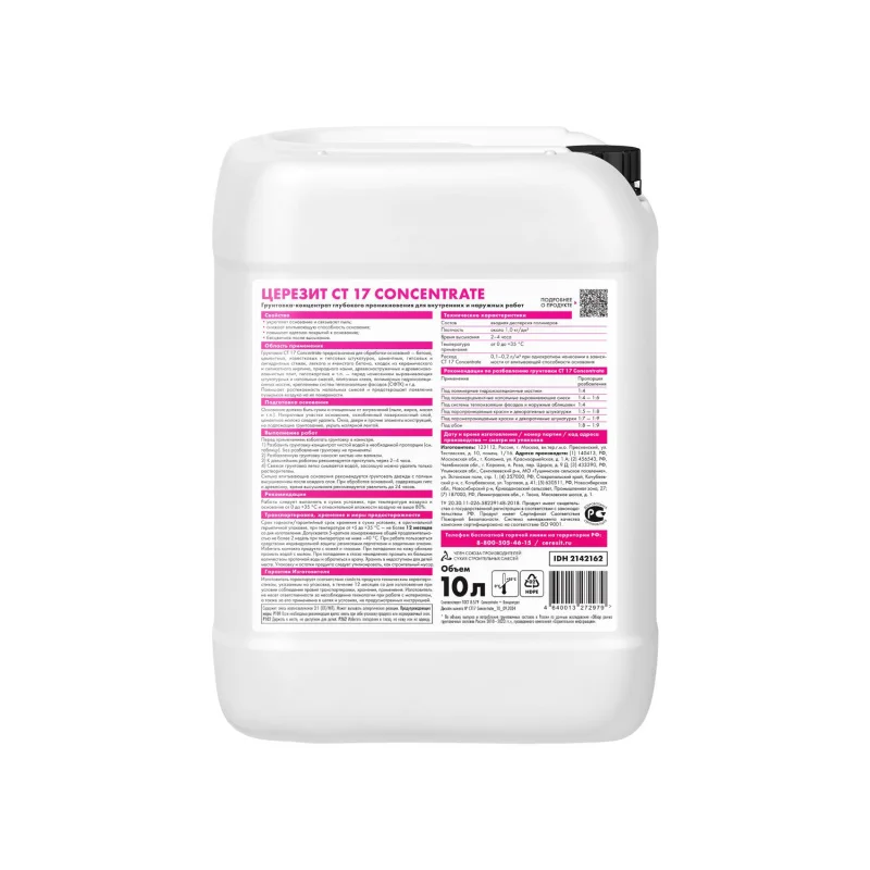 Ceresit CT 17 Concentrate является грунтовкой концентратом, которая используется для обработки поверхностей перед нанесением различных отделочных материалов. Она отличается повышенной проникающей способностью и значительно укрепляет основания, снижая его впитываемость. Эта грунтовка подходит для работы как внутри, так и снаружи помещений и может использоваться на различных видах поверхностей, включая бетон, кирпич, камень и гипсокартон. Она бесцветна и не содержит органических растворителей, что делает ее безопасной для использования.
