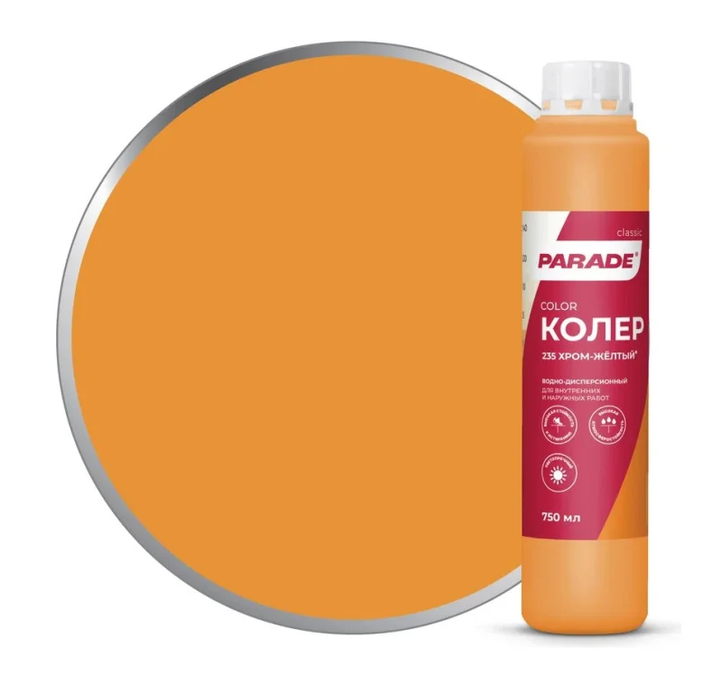 Колер PARADE является отличным решением для лакокрасочных материалов, обладающих экологической чистотой и основанных на водной основе. Он идеально подходит как для работ внутри помещений, так и для наружных работ. Этот колер разработан специально для тонирования всех видов красок, шпатлевок и декоративных штукатурок на водной основе. Он обеспечивает прекрасное качество окраски, сохраняя при этом безопасность и соответствие экологическим нормам. Кроме того, колер допускает использование в концентрированном виде для особых случаев оформления интерьеров и фасадов зданий. Это позволяет создавать уникальные эффекты и особые атмосферы в дизайне, придавая помещениям и зданиям индивидуальность и стиль.