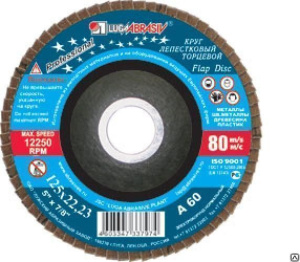 Круг лепестковый 125х22 А 80 (14А 20/P80) Луга. Для плоского шлифования, обработки кромок и сварных швов деталей и конструкций из различных марок сталей, цветных металлов и древесины.