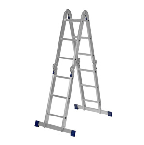 Алюминиевая, четырехсекционная, шарнирная лестница.