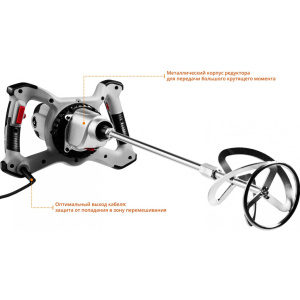 Миксер строительный ЗУБР МР-1400-2 — это новая модель с характерным фирменным дизайном. Этот простой и надёжный инструмент предназначен для перемешивания различных растворов. Он оснащён двухскоростным редуктором, подходящим для разных материалов, а также электронной регулировкой оборотов для плавного изменения скорости. Удобная эргономичная рукоятка обеспечивает комфортный захват. Большой ассортимент сменных насадок позволяет эффективно работать с различными материалами.