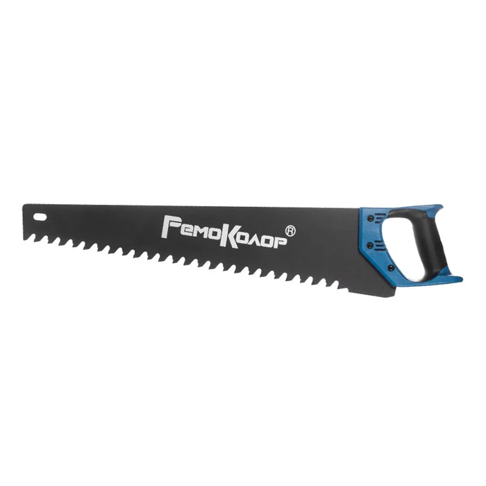 Ручная пила с твёрдосплавными напайками служит для распиловки легких бетонных блоков. Полотно изготовлено из высокоуглеродистой инструментальной стали.