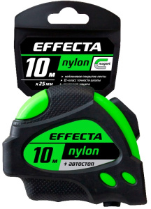 Рулетка 10м/25 мм с магнитом, автостопом, лентой нейлон EFFECTA Nylon 581025 удобна при работах на строительной площадке и в мастерских. Инструмент оснащен прочным корпусом, который легко выдерживает сложные условия эксплуатации.