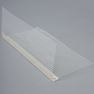 Угол с сеткой изготавливается из профиля углового ПВХ, с отверстиями для штукатурного состава и сетки стеклотканевой, которая при помощи специального оборудования наклеивается вдоль штукатурного уголка. Используется для всех внешних углов фасада зданий, за исключением верхней горизонтальной части окна, где располагается профиль -капельник. Угол- внутренний. Сетка плотность 145