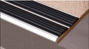 Двойная полоса противоскользящая алюминиевая 79,4х4,8 мм, с ЧЕРНОЙ резиновой вставкой (2 резинки), длина 1 м.