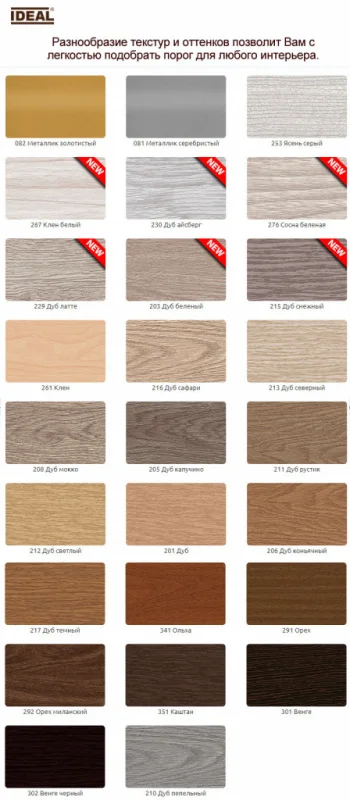 Разнообразие текстур и оттенков позволит с легкостью подобрать порог для любого интерьера.