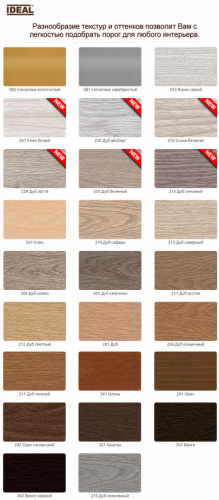 Разнообразие текстур и оттенков позволит с легкостью подобрать порог для любого интерьера.
