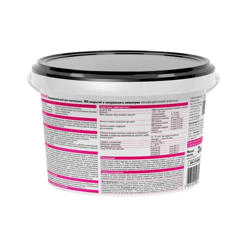 Клей UK 400 предназначен для укладки на впитывающие основания пола (бетонные, цементно-песчаные и т.д.) в жилых и общественных помещениях: