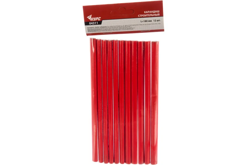 Карандаш строительный одноцветный 12 шт КУРС - надежный помощник, применяется для разметочных работ в строительных, ремонтных или столярных работах. Изделие выполнено из качественного графита и высокопрочного деревянного корпуса. Благодаря карандашу можно быстро сделать нужные разметки. Набор состоит из 12 карандашей.