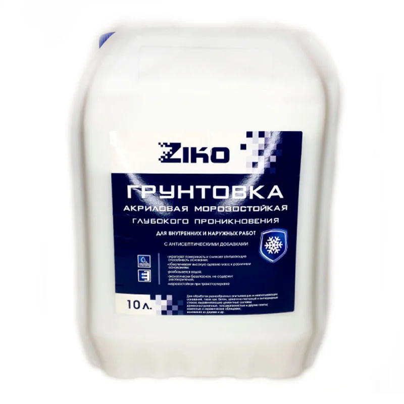 Акриловая морозостойкая грунтовка ZIKO применяется для предварительной обработки впитывающих поверхностей перед нанесением различных покрытий, таких как штукатурка, керамическая плитка, самовыравнивающиеся смеси для пола, водно дисперсионные краски и обои. Она подходит для использования на различных типах поверхностей, включая бетон, штукатурку, гипсокартон, ДСП и другие виды плит. Также эта грунтовка может быть использована для укрепления старых меловых поверхностей внутри помещений перед их покраской водными красками.