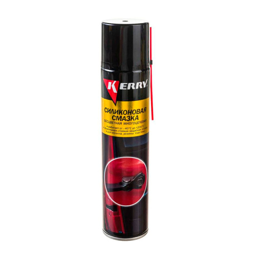 Силиконовая смазка KERRY является незаменимым средством для защитной обработки деталей и механизмов автомобиля. Её основу составляет силикон, смешанный с углеводородными растворителями и пропеллентом, всё упаковано в аэрозольную упаковку. Этот продукт широко применяется для смазывания, защиты и ухода за пластиковыми, металлическими и резиновыми поверхностями. Он эффективно предотвращает примерзание и деформацию резиновых уплотнителей дверей, капота и багажника, что в свою очередь продлевает их срок службы. Кроме того, смазка KERRY устраняет скрип дверных петель и снижает вероятность заклинивания тросов, приводов и замков.