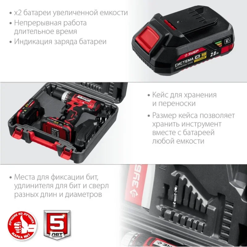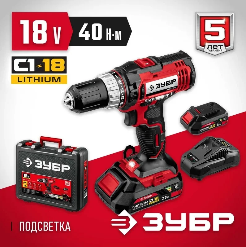 Дрель-шуруповерт ЗУБР ДШЛ-185-22 используется для сверления отверстий в различных материалах (при установке сверла) и для монтажа/демонтажа резьбовых соединений (при установке соответствующих бит и головок).